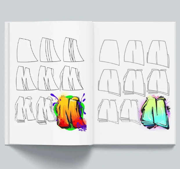 The journey doesn’t stop at just the finished letters—this guide also walks you through the creative process behind graffiti writing, offering a step-by-step breakdown of how to construct a letter from the ground up.